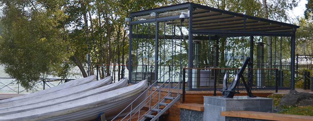 Шлюпбаза (общая площадь 35 кв.м.) может являться популярным местом при проведении мероприятий для маленьких групп, как альтернатива Ротонде в период летнего сезона. Преимуществом являются: дневной свет, видовые характеристики, уединенность, наличие обогрева.