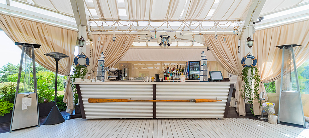 Ресторан располагается на территории и функционирует в теплое время года. Сидя за столиком на улице, вы можете насладиться роскошным видом Истринского водохранилища и попробовать блюда европейской кухни, приготовленные на открытом огне, а также в дровяной печи.