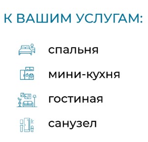 2 спальни (одна из которых с двумя раздельными кроватями); мини-кухня; гостиная; санузел; балкон; терраса.